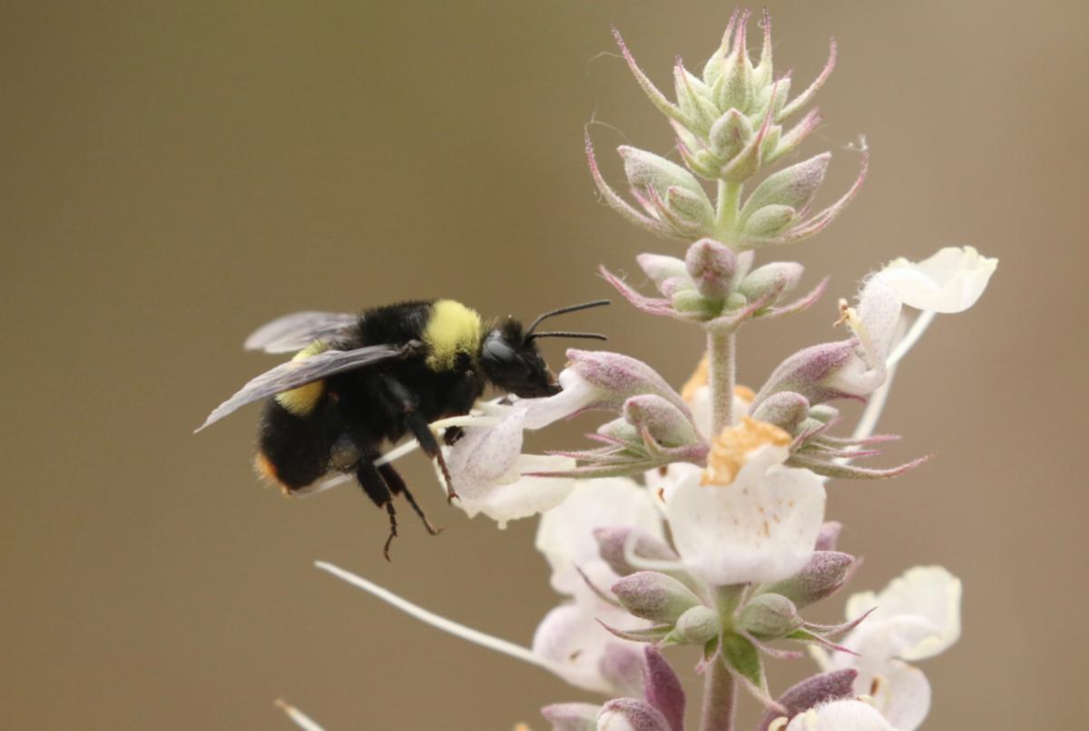 Although B. crotchii feeds on a variety of our native flowers, including lupines, medics and sages, one of its favorite nectar sources is the milkweed plant. Its role as a pollinator is beneficial to monarch butterfly caterpillars that depend on milkweed plants as their food source.