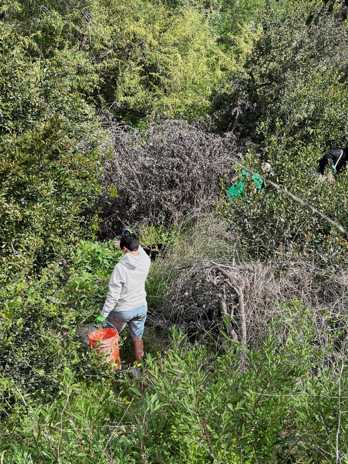 Removing non-native plants and watering native plants as needed.