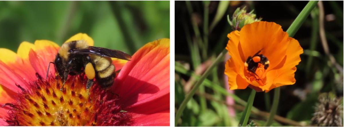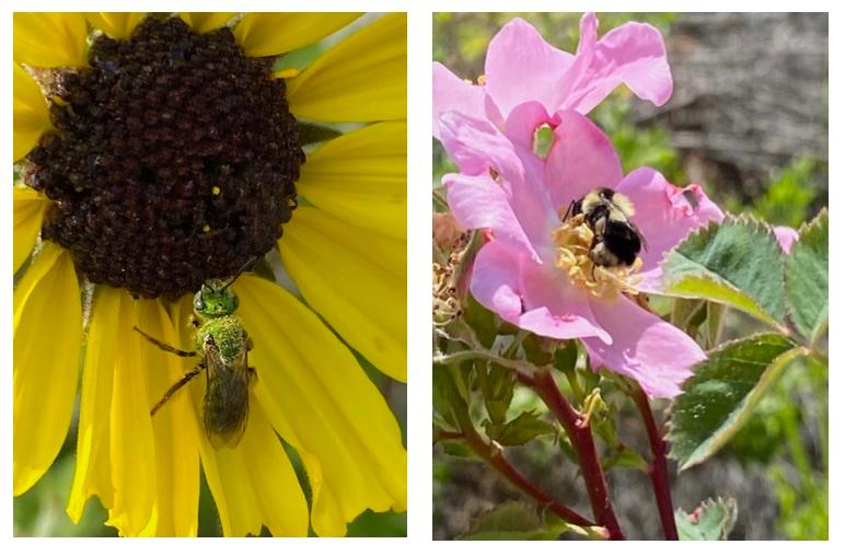 Left: Sweat bee and black tailed bumble bee (photos by. K Merrill)