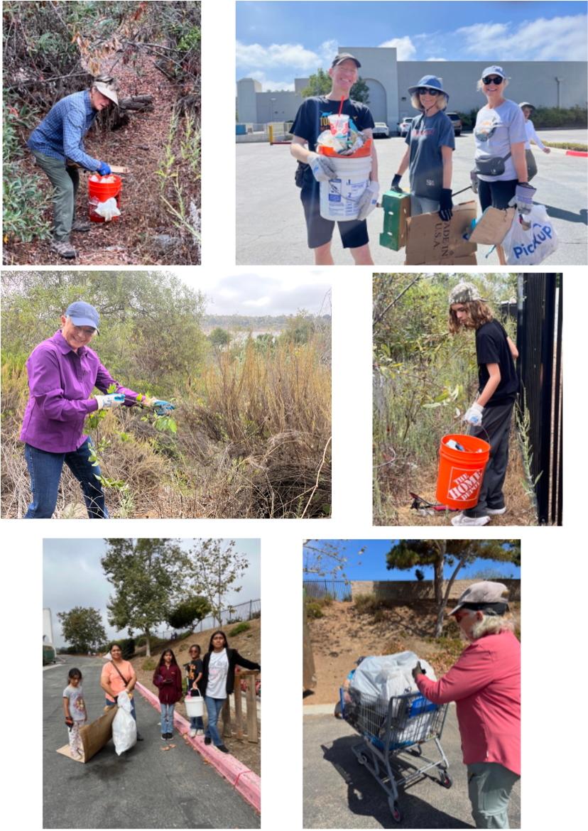 Below, Some of our hard working volunteers of all ages collecting trash and removing invasive weeds. Photos by Vince Rivas and E. Bartlett