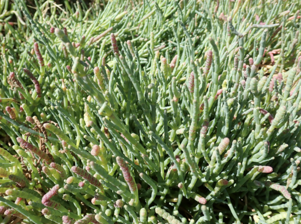 Pickleweed is also called sea asparagus since it resembles asparagus in appearance and the stems are edible. Pickleweed species belong to the Goosefoot family (Chenopodiaceae) which includes sugar beets and spinach. The leaves can be eaten both raw and cooked. Here is a link to some recipes: Sea Asparagus Recipes