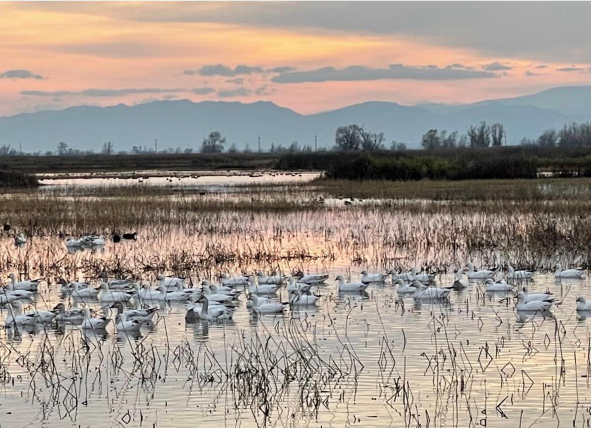 Below, snow geese stopping off along the flyway at the Sacramento National Wildlife Refuge Photo credit: Jenn Bowles, Water Education Foundation.