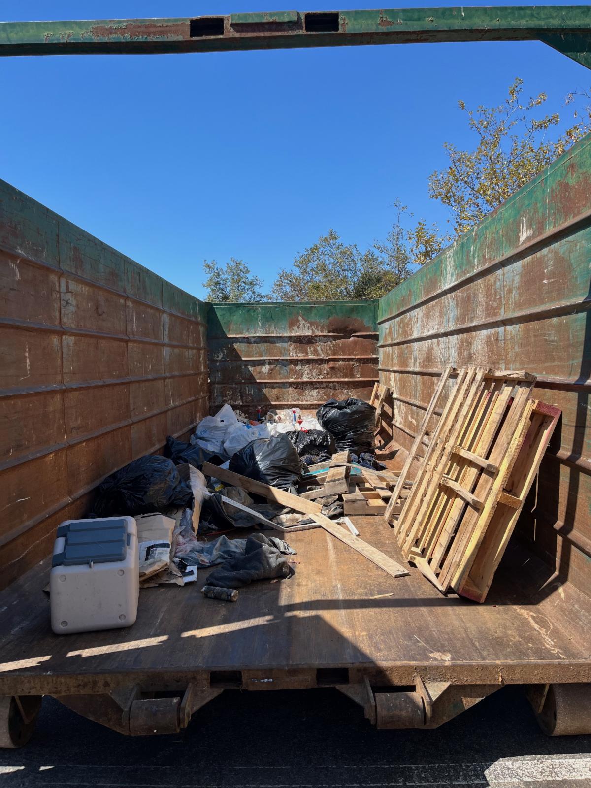 | | Above, Mel Vernon (far left) with site captains Vince Rivas (blue shirt) and Diane Nygaard (at right holding sign). | | Volunteers signing in Saturday morning before the clean up. The fence that was erected in 2023 is visible near the top left of the photo below the tree. (photo by E. Bartlett) | | The amount of trash at the Quarry Creek site has decreased sharply since a fence was erected along the site 2023. There was about 4000 pounds of trash collected in September 2023, 1900 pounds in September 2024 and 403 pounds collected this year (September 2025). | Above photo 2023 waste bin after clean up. Below photo 2025 bin after clean up. | | | |