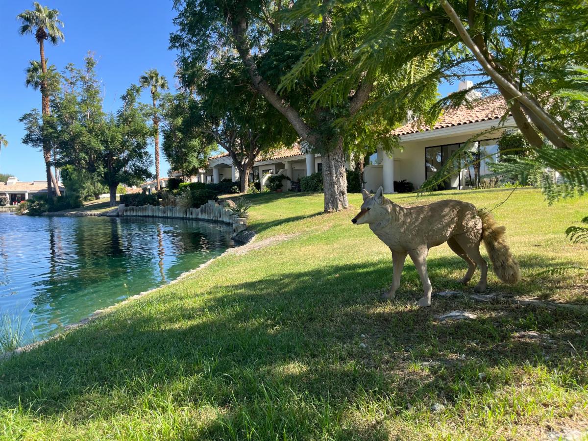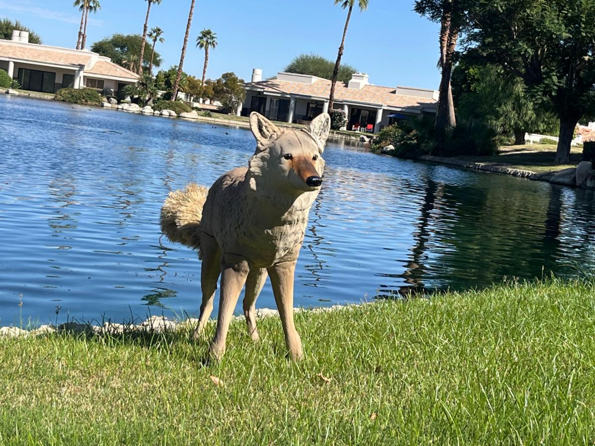 Six realistic coyote decoys will be strategically placed around Lake SRS 2. These lifelike figures mimic natural predators, helping to reduce bird activity for the purpose of keeping the lake’s perimeter and neighboring hardscape cleaner, and minimizing damage to the surrounding turf. Keeping the areas cleaner will not only improve aesthetics, but it also reduces the likelihood of someone slipping and injuring themselves due to waterfowl feces.