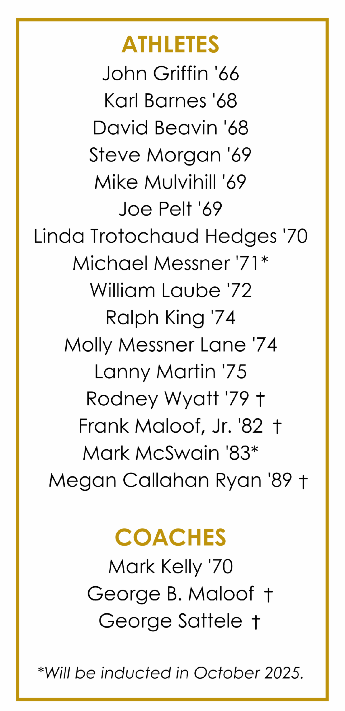 We are thrilled to announce the Inaugural Class of the Athletic Hall of Fame! Given the remarkable number of outstanding athletes and coaches, this prestigious class will be inducted in three phases.