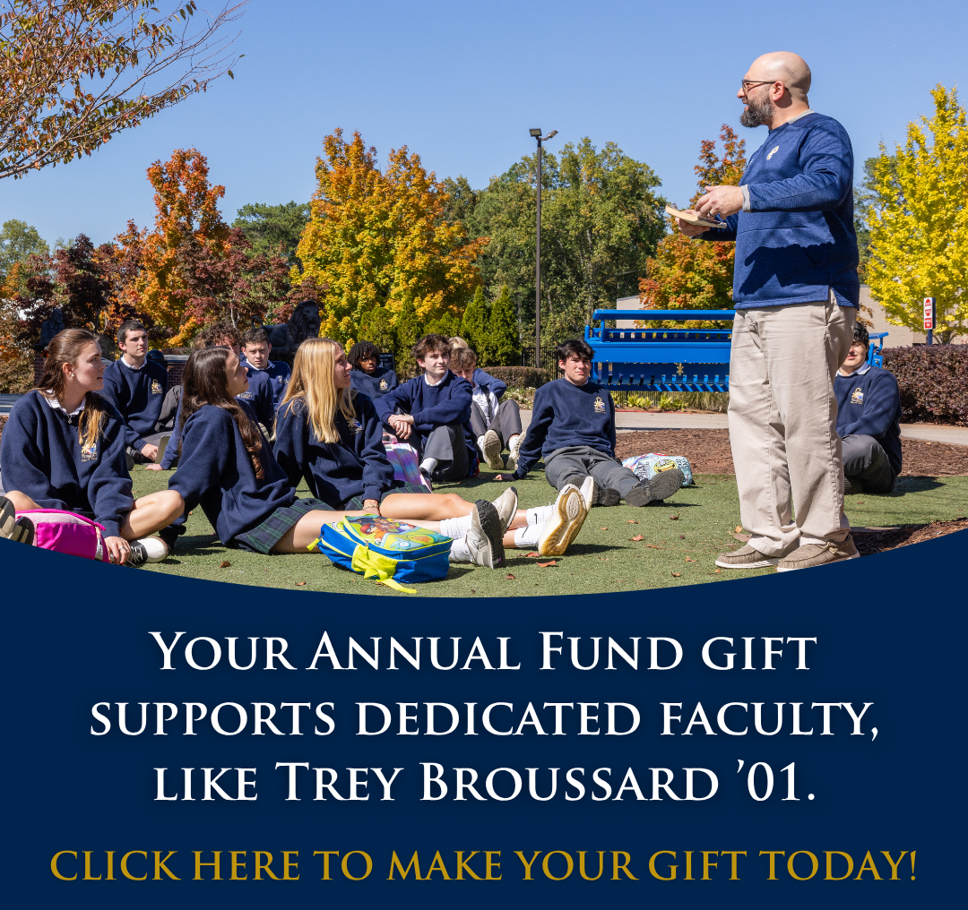 Your Annual Fund gift directly supports dedicated faculty, including alumnus Trey Broussard '01, who has been a key member of the St. Pius X faculty since 2007.