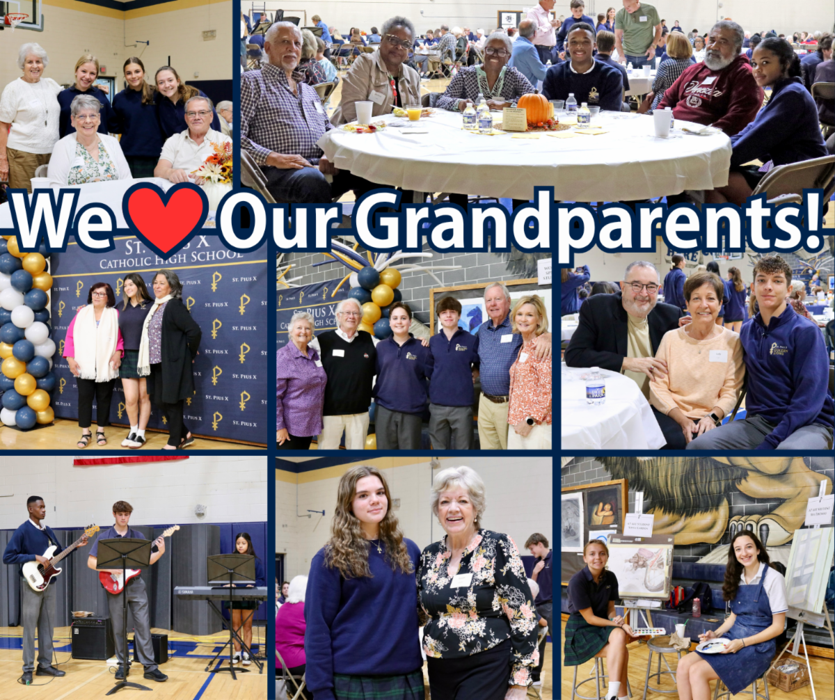 On Friday, October 17, our campus was filled with joy as we welcomed nearly 200 grandparents of freshmen and new students for our annual Grandparents’ Day celebration. The morning began with a delicious breakfast accompanied by live jazz music and surrounded by beautiful student artwork. Fr. Robbie Cotta, our St. Pius X Chaplain, led a meaningful Mass, and senior Mackenzie Stultz shared a heartfelt reflection that touched everyone in attendance. The day wrapped up with guided campus tours, giving our guests a glimpse of life at St. Pius X. We’re so grateful to all the grandparents who joined us and helped make the day so special.