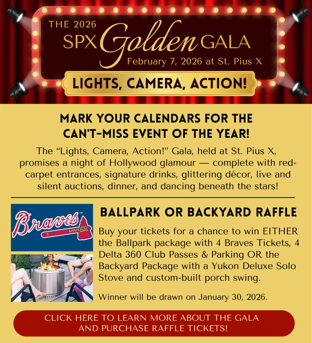 Winter is COMING! As Fall Sports begin to wrap up, it’s time to put on your favorite PiHi pullover and join us at St. Pius X events, both home and away. The buzz around Flag Football is similar to that of pickleball, so come see what all the excitement is about on Thursday, October 23, at the George B. Maloof stadium as the Golden Lions battle North Atlanta at 6:00 p.m. and Riverwood at 8:00 p.m.