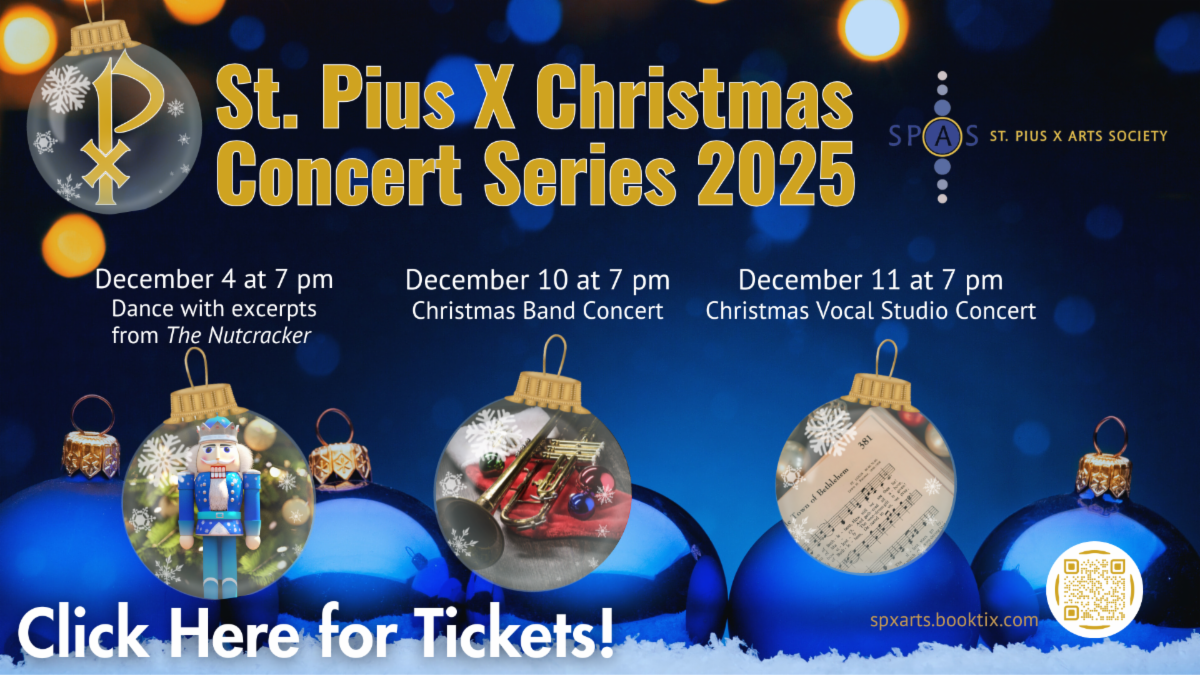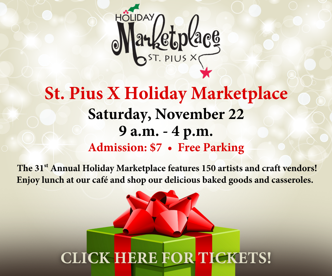 If you’re looking for something fun to do this weekend, I invite you to join us for our 31st annual Holiday Marketplace on Saturday, November 22. Hosted by our Mothers’ Club, this beloved tradition raises thousands of dollars for scholarships, helping make a St. Pius X education possible for more families. It’s also a wonderful chance to support local artists and get a head start on Christmas shopping!