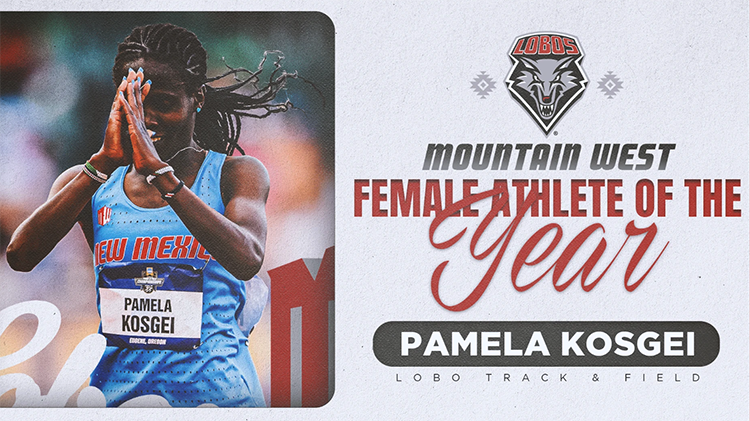 What a year for Lobo freshman sensation Pamela Kosgei! After a season packed with jaw-dropping performances, Kosgei has been named the Mountain West Female Athlete of the Year — our second Lobo in three years to earn the honor. In her debut year, she racked up six MW titles, five All-American awards, and two NCAA outdoor national titles, all while helping UNM sweep the women’s cross country, indoor, and outdoor team championships for the first time ever. She also punched her ticket to the Kenyan national team for the 2025 World Athletics Championships. Off the track, Kosgei shined academically, earning National Scholar-Athlete of the Year honors. Simply put, she’s making Lobo history — and she’s only just getting started. Congratulations, Pamela—Lobo Nation is proud of you.