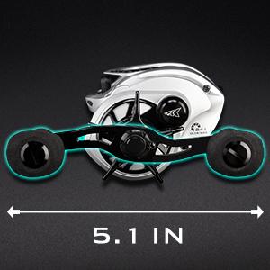 KastKing Kapstan Elite has a 5.4:1 gear ratio and retrieves fishing line at a rate of 25.31 inches per turn on its aluminum spool that has a spool tensioning nut with click adjustments. Line capacity is rated at 230 yards of 14 lb monofilament or 240 yards of 50 lb test KastKing KastPro braided fishing line. Kapstan 300 features a wide (5.1in/130mm), aluminum handle with large EVA grips for added leverage when fighting on big fish.