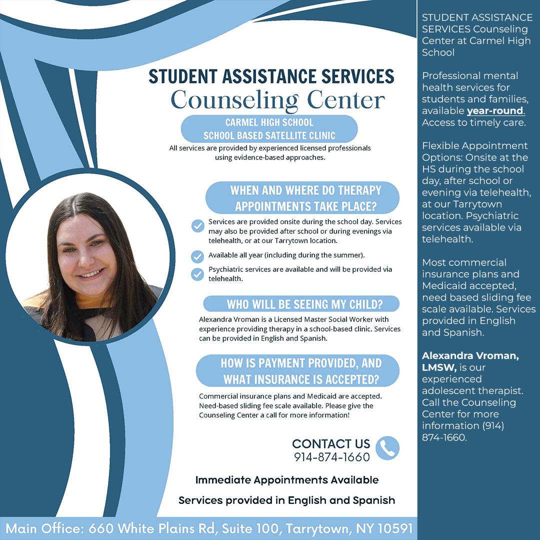 STUDENT ASSISTANCE SERVICES Counseling Center at Carmel High School
