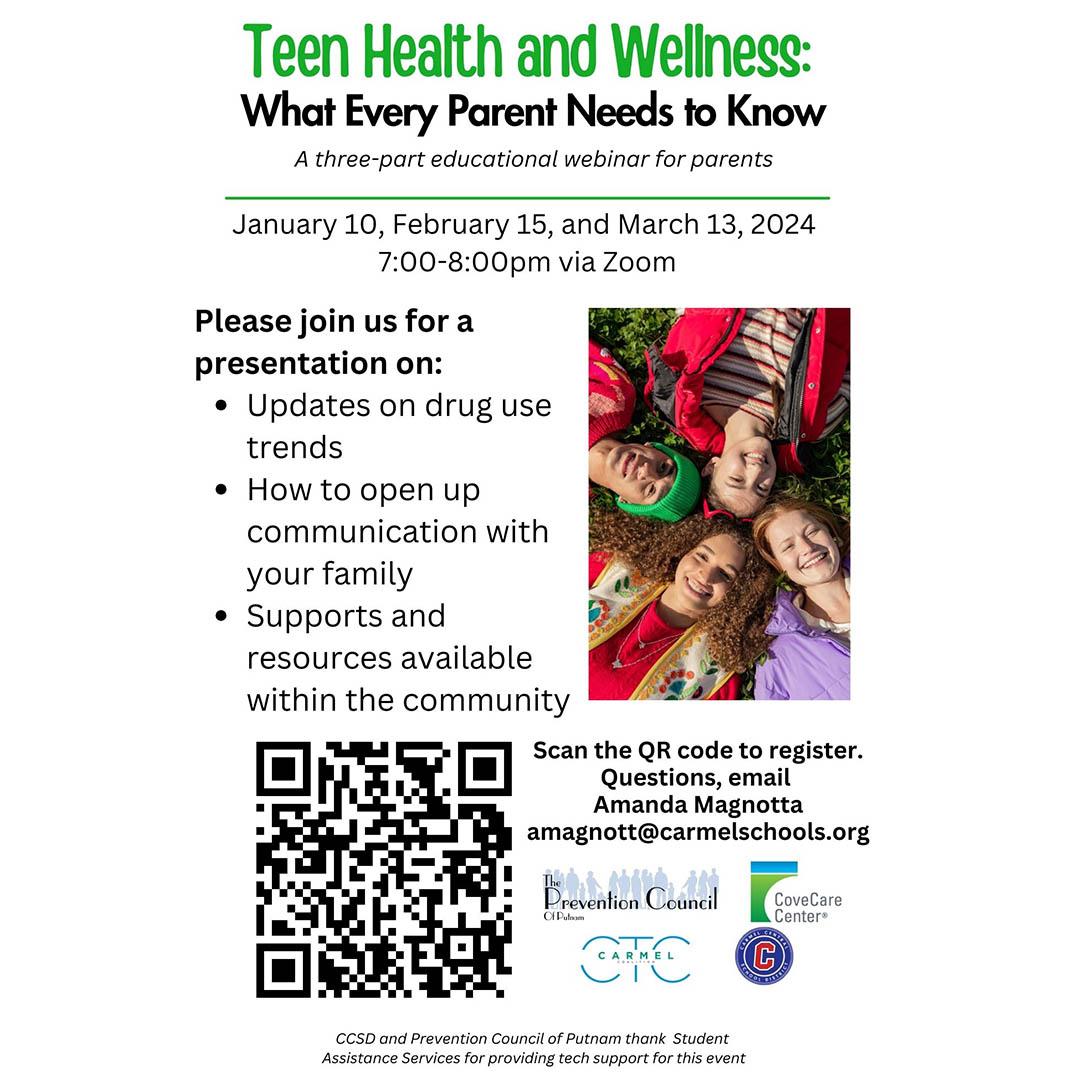 Ms. Amanda Magnotta, Carmel High School Student Assistance Counselor, along with representatives from the Prevention Council of Putnam and CoveCare Center will host the webinar.