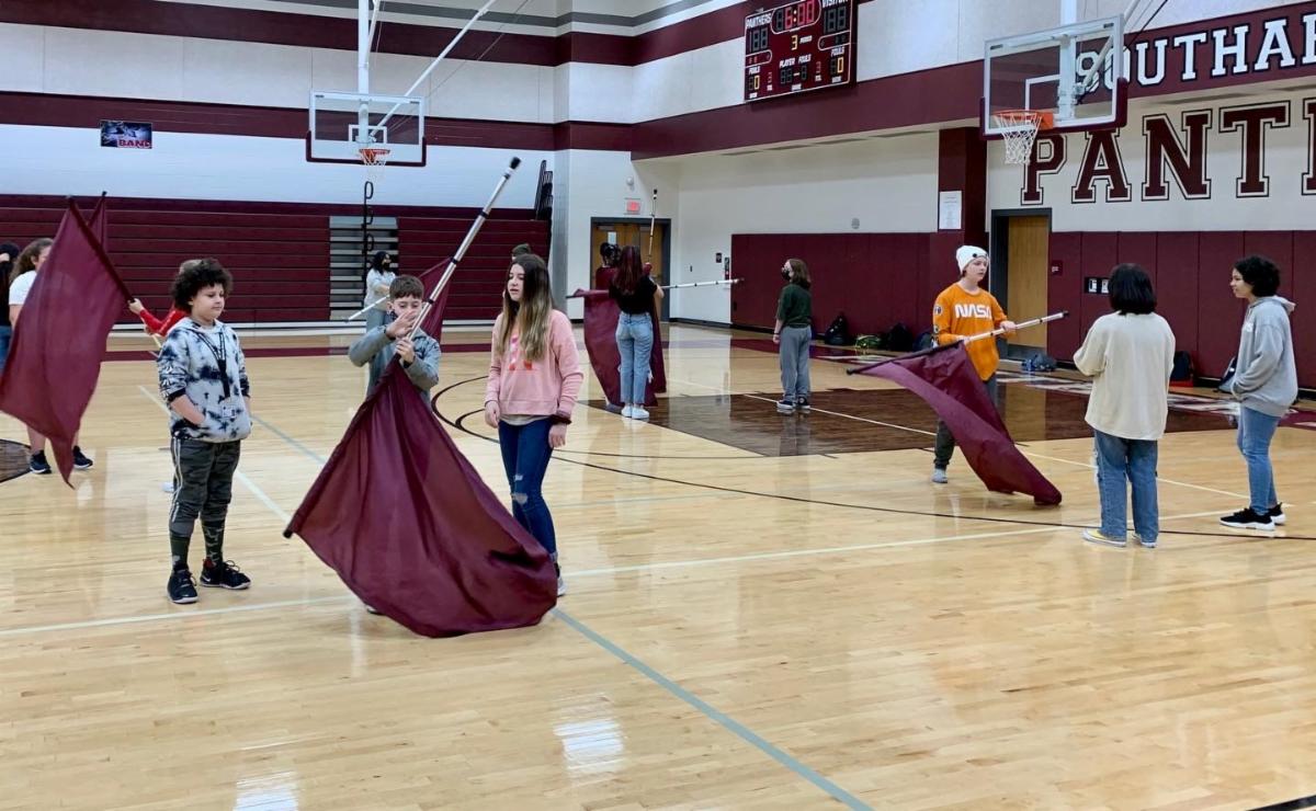 During 3rd and 4th period recently, the Southard Color Guard students introduced the 6th-graders in PE to their everyday routine. Color Guard is one of the Physical Education courses offered at PISD for 7th- to 12th-grade students.