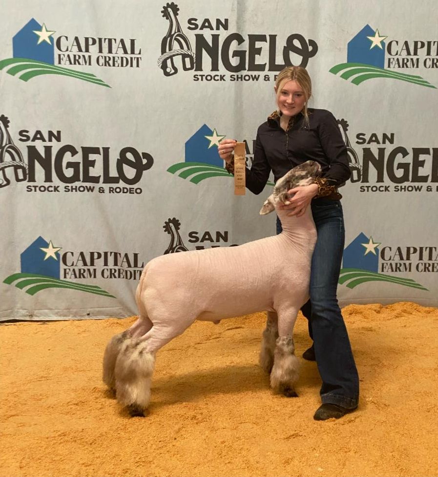Senior FFA member Chloe Frohock showed her lamb at the San Angelo Stock Show and placed 9th and will qualify for premium money from the Texas Lamb Breeders Association.