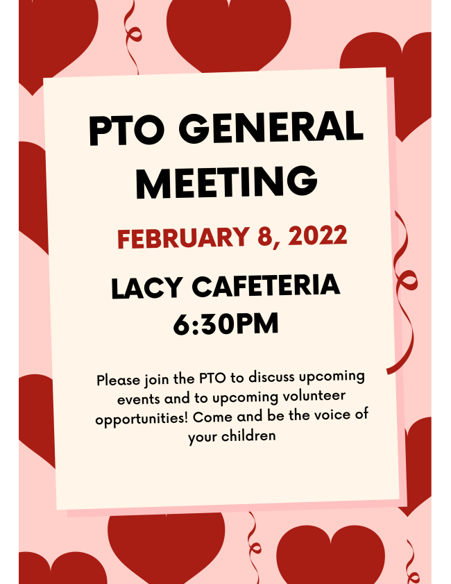 The Lacy PTO will meet at 6:30 tonight, Feb. 8, in the Lacy cafeteria.