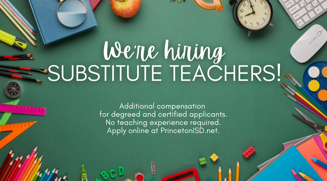 Check out all the openings on the district website at www.princetonisd.net. Click the Human Resources tab.