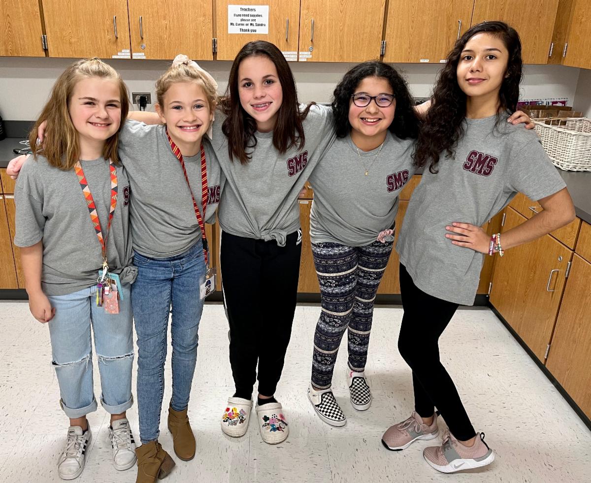 Several 6th-grade members of Southard Elite Club wore matching shirts recently. This club consists of 6th- to 8th-grade students who strive to make the campus a better place by helping custodians, teachers, admin, coaches when they see a need. Students interested in joining the club need to contact Principal Richard Boring during lunch.