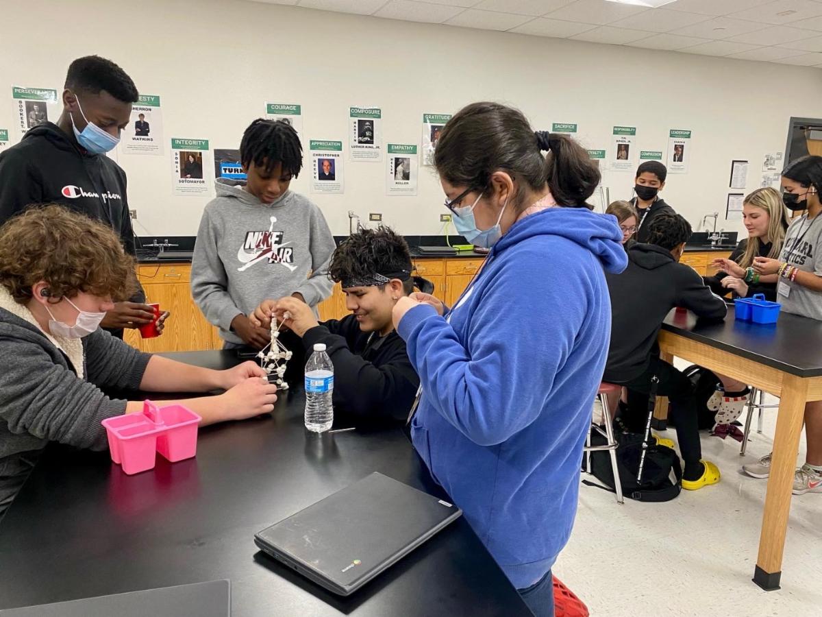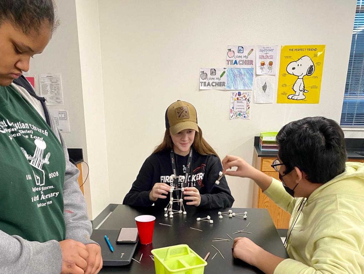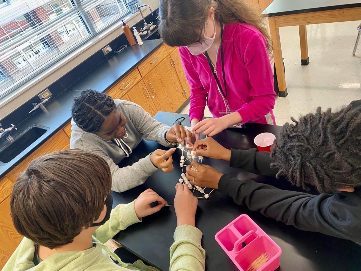 Students in Haley Scott's character education classes at Southard Middle School worked on building towers with marshmallows and toothpicks to better understand group dynamics and communication.