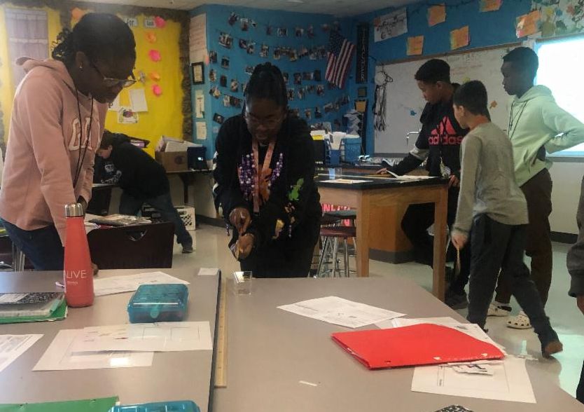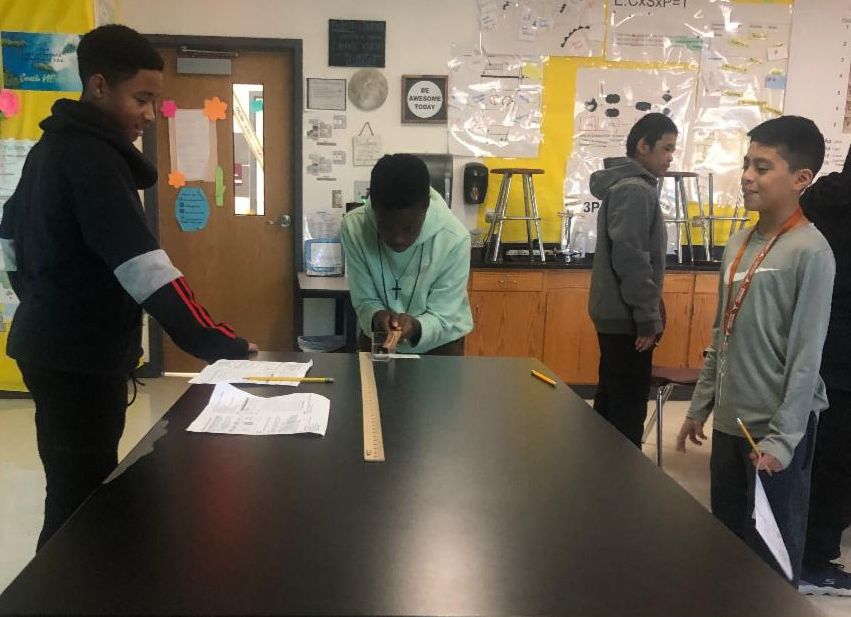 Students in Brittany Neal's 6th-grade science class are learning about elastic potential energy being converted into kinetic energy.