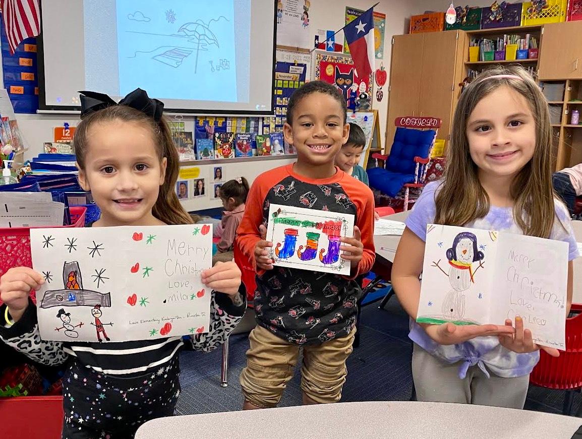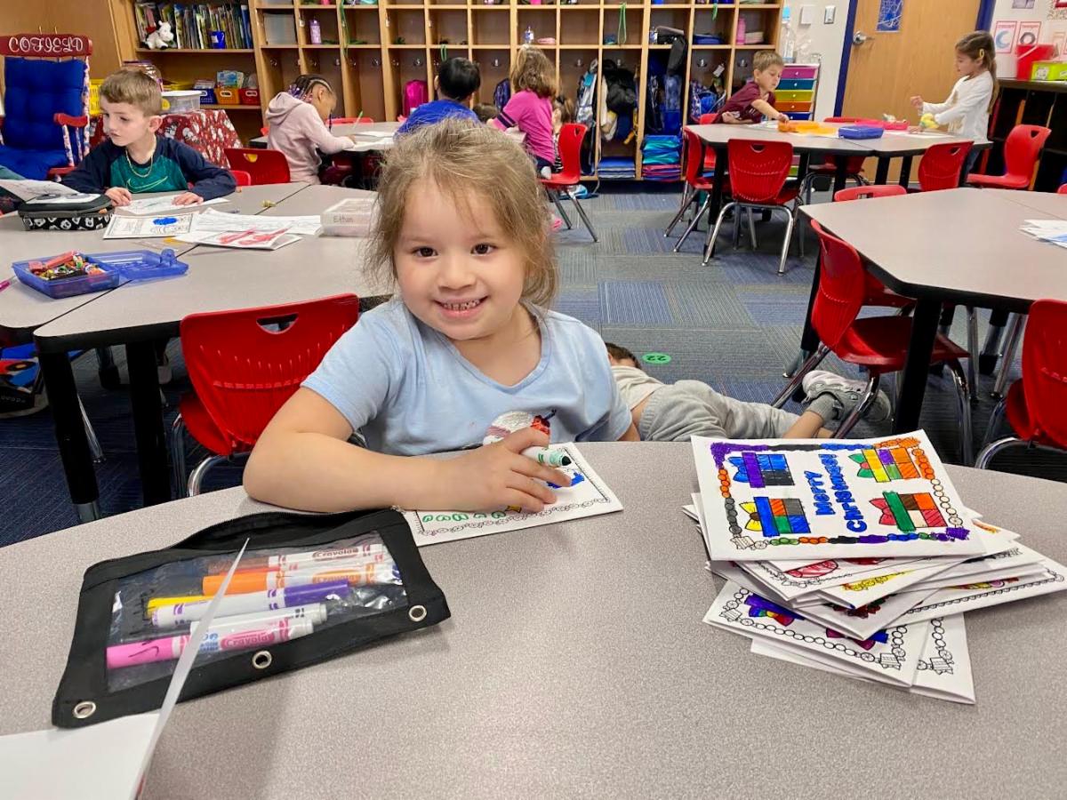 Kindergarten students at Lowe made Christmas cards for local elderly residents.