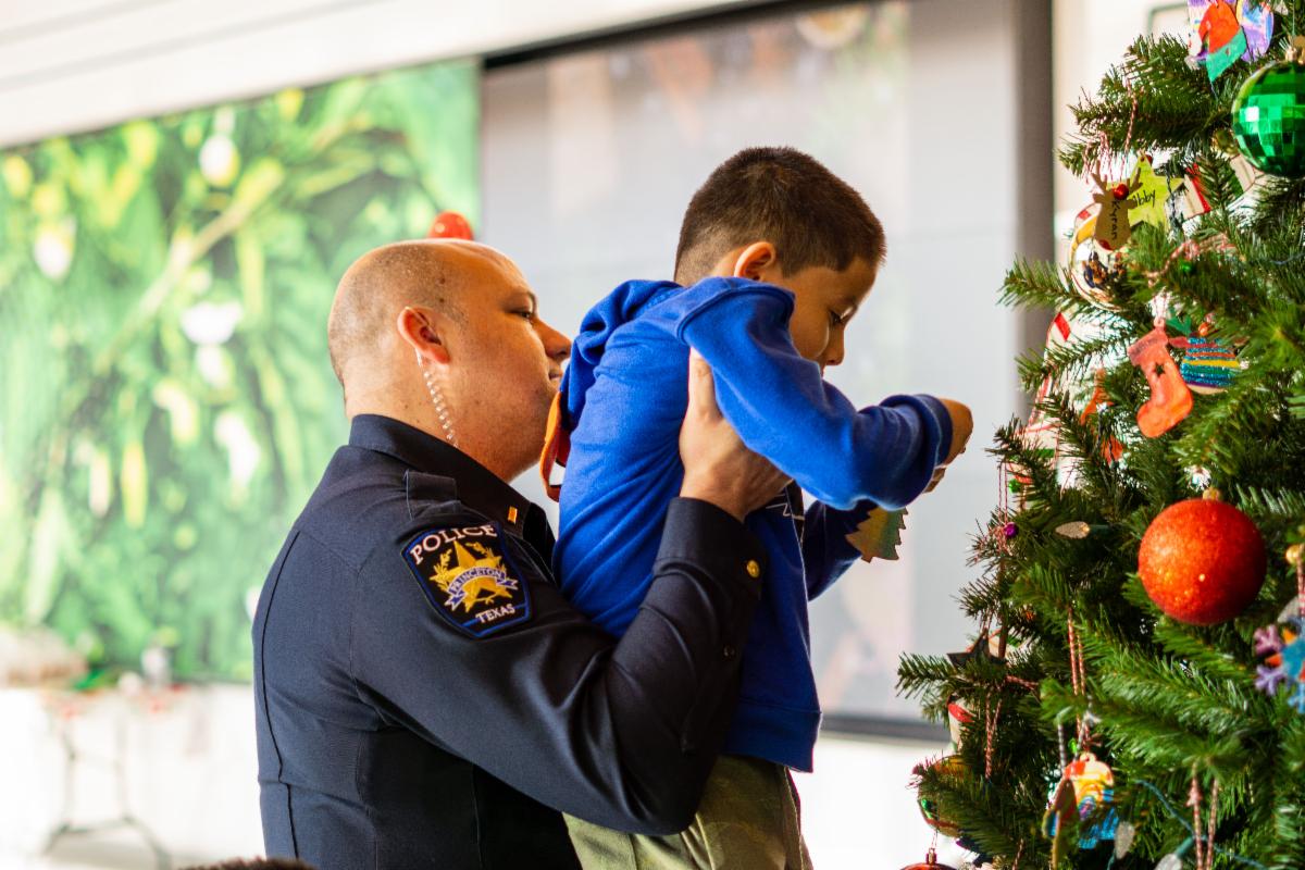 Kindergarten students from every Princeton elementary campus rotated visits to the Princeton Municipal Center last week to lend a helping hand. The students were tasked with the most important job of the season, decorating the city’s Christmas tree. With assistance from city officials, including Princeton’s first responders, the children transformed the tree from a basic evergreen into a Christmas masterpiece with their ornaments.