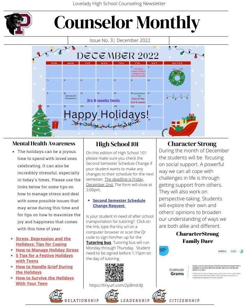 PISD will release early Friday, Dec. 16, for Christmas break. Schools will observe the following release schedule: PHS and Lovelady release at 12:05 p.m., buses run at 12:30 after lunch; Clark and Southard release at 12:35 p.m.; all elementary schools release at 1:30 p.m.; and Canup releases at 1:40 p.m.