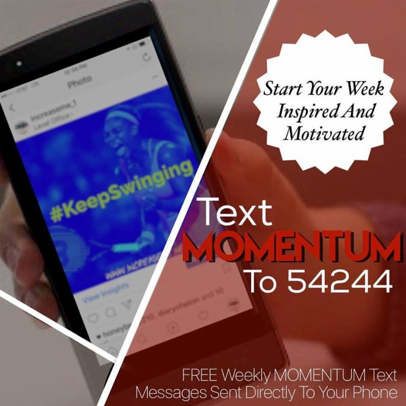 MOMENTUM Text Messages can help you keep the positive energy you need to succeed. Get your first MTM today by texting