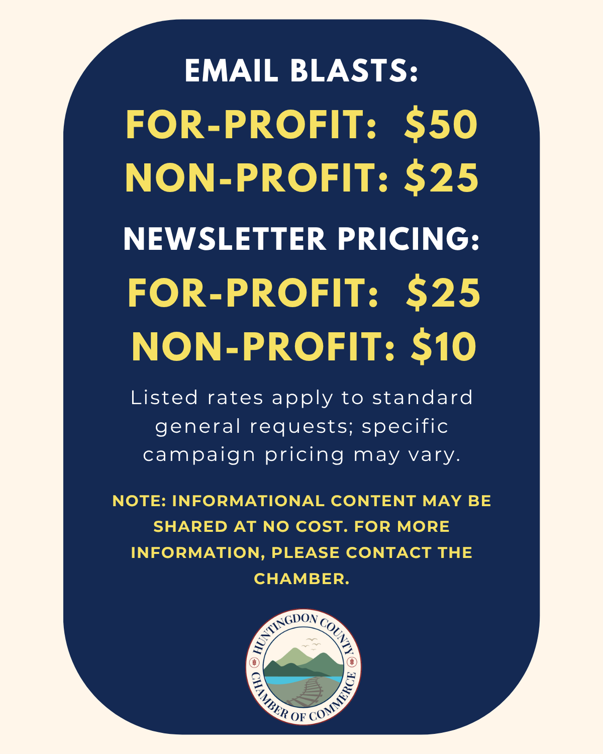 MEMBERS ONLY: Download our logo to use on your website. Click the logo for more information. Feel free to link the image on your website to our website, huntingdonchamber.com.