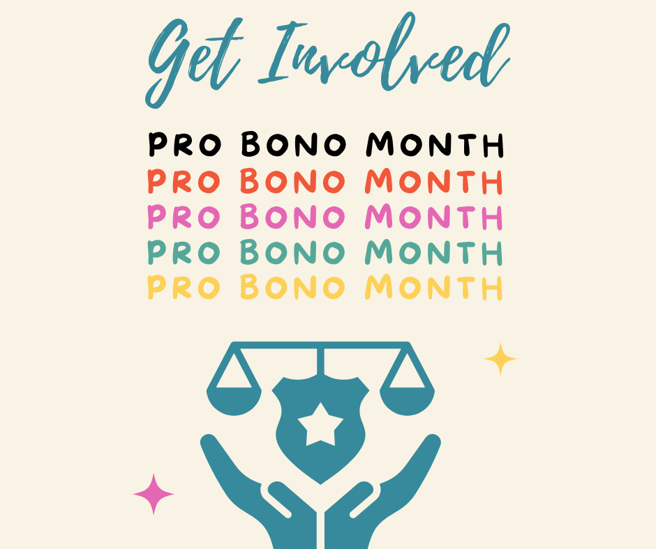 We invite all members of the legal community to take this month as an opportunity to reaffirm their commitment to pro bono service—whether by volunteering, mentoring or simply spreading the word about the importance of access to justice for all!