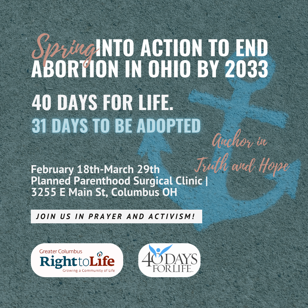 These words call us to accompany Christ in his suffering, to remain spiritually awake, and anchored in truth and hope. These words call us to spring into action to end abortion in Ohio by 2033.