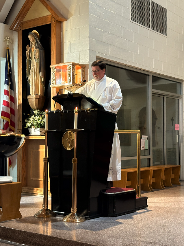 Newly ordained deacon, Jim McDonald, led the rosary and Benediction with the help of the students.
