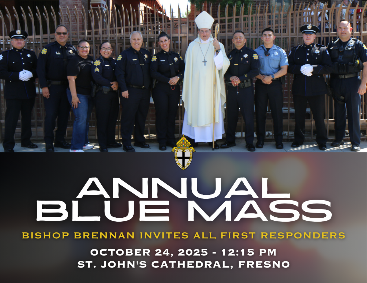 The Annual Diocesan Blue Mass is THIS FRIDAY, October 24th. Bishop Brennan encourages all first responders and the faithful to attend the Blue Mass at St. John's Cathedral in Fresno starting at 12:15pm.