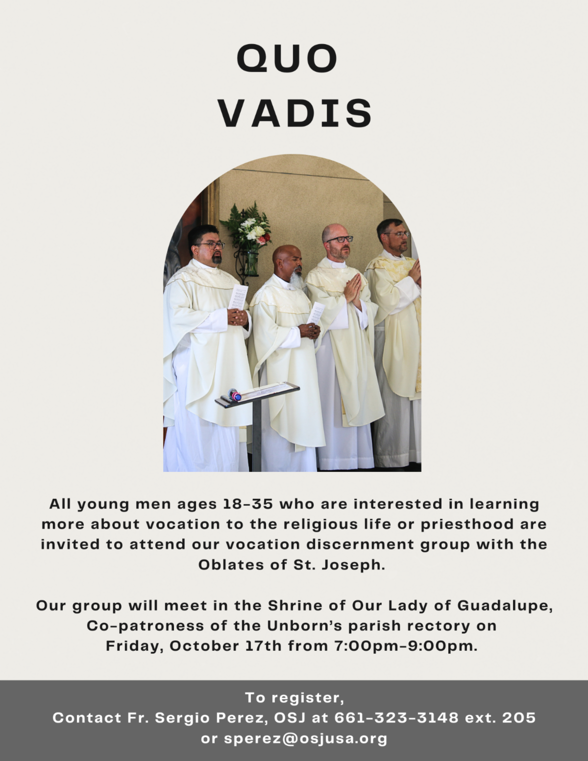 To register, contact Fr. Sergio Perez, OSJ at (661) 323-3148 or sperez@osjusa.org.