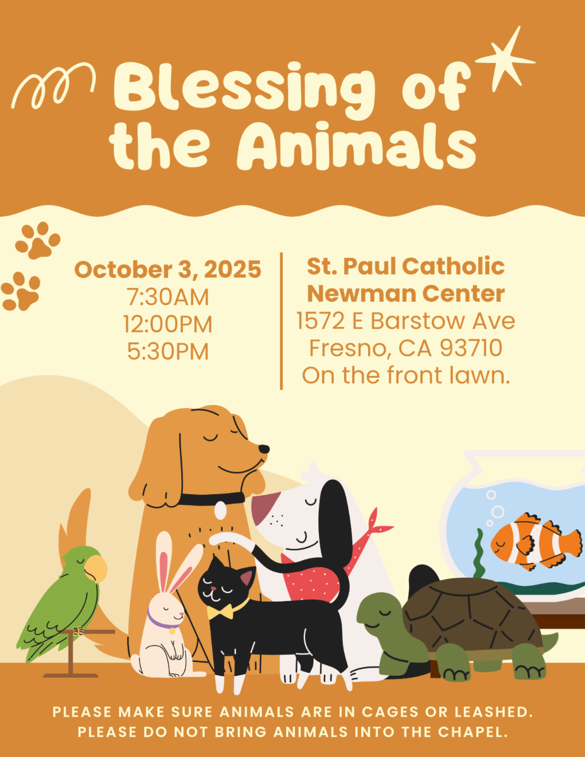Bring your pets to the St. Paul Catholic Newman Center for a special blessing!