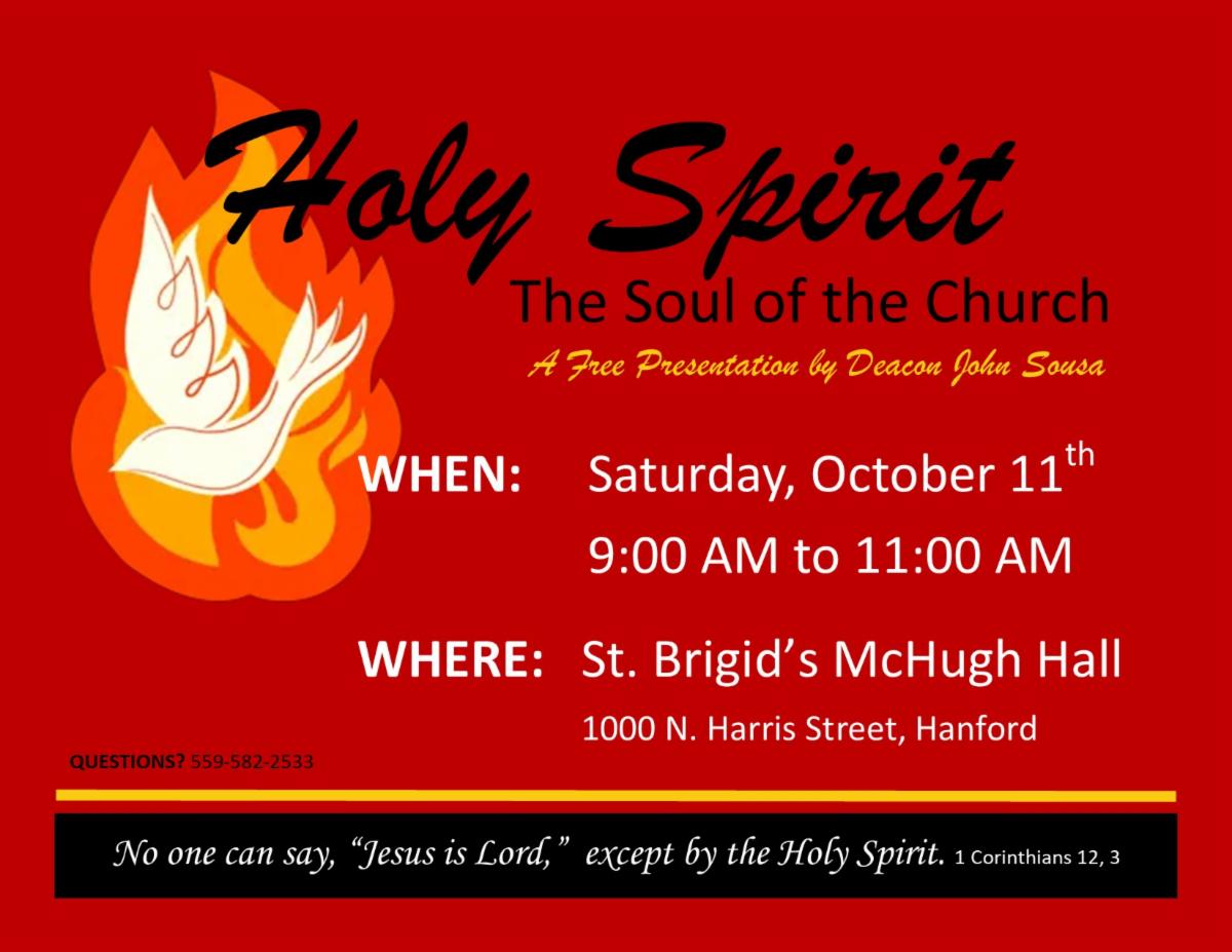 St. Brigid parish invites you to Holy Spirit: The Soul of the Church, a presentation by Deacon John Sousa!