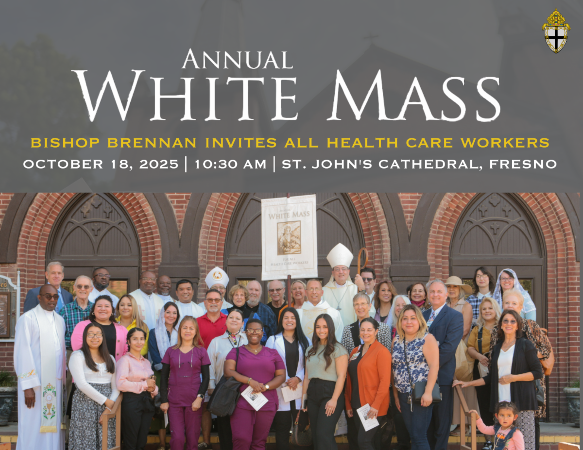 The Annual White Mass for healthcare workers will be on Saturday, October 18th at St. John's Cathedral in Fresno starting at 10:30am.