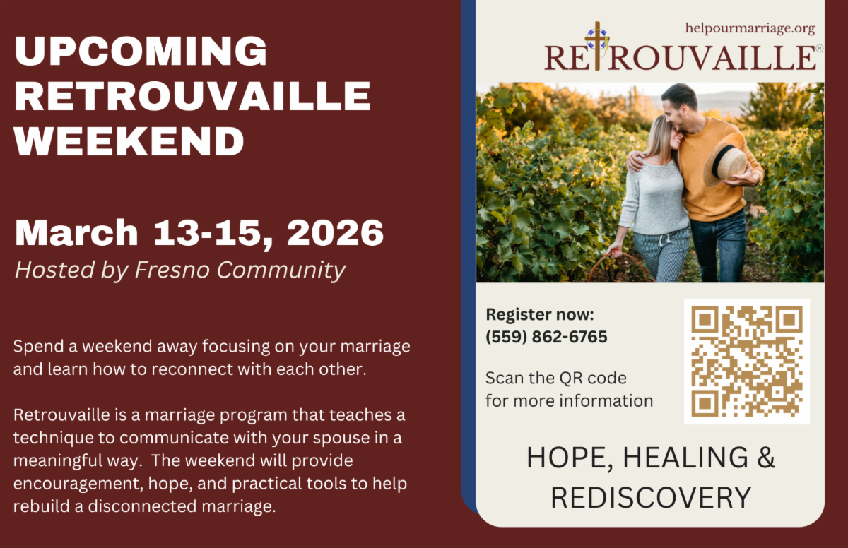 Married couples who are looking for hope, healing, and rediscovery in their marriage are invited to attend Fresno Retrouvaille's upcoming weekend program.