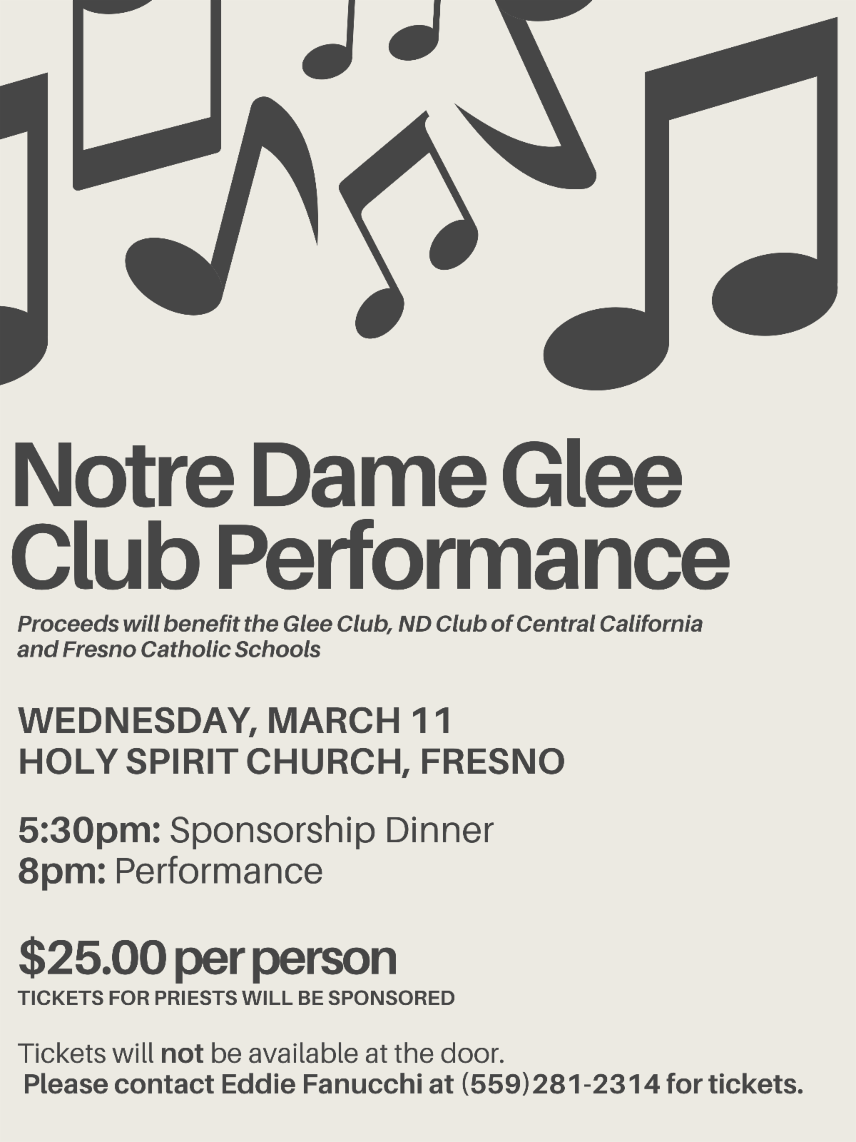 Proceeds will benefit the Glee Club, ND Club of Central California and Fresno Catholic Schools!