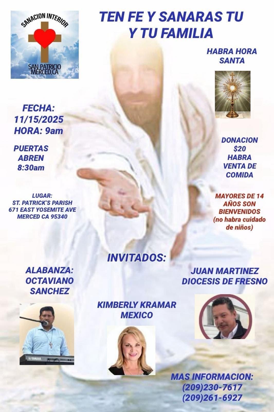 St. Patrick's parish in Merced invites you to a Spanish Retreat on Saturday, November 15th at 9:00am.