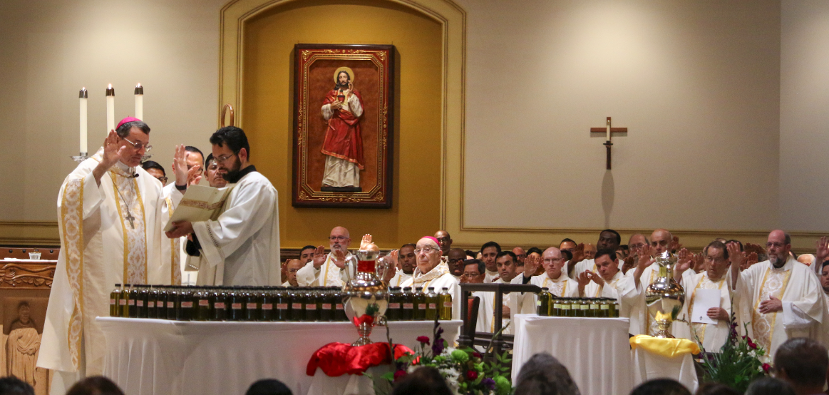 During the Mass, Bishop Brennan blessed the Holy Oils that will be used for Sacraments throughout our parishes in the Diocese and renewed the vows of our priests.
