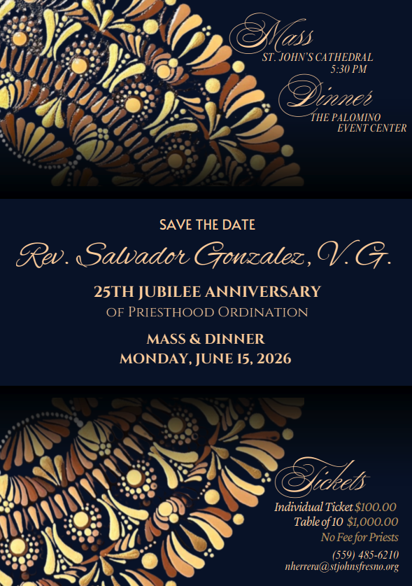 Celebrate the 25th Priesthood Anniversary of Fr. Sal Gonzalez, Vicar General, hosted by St. John's Cathedral.