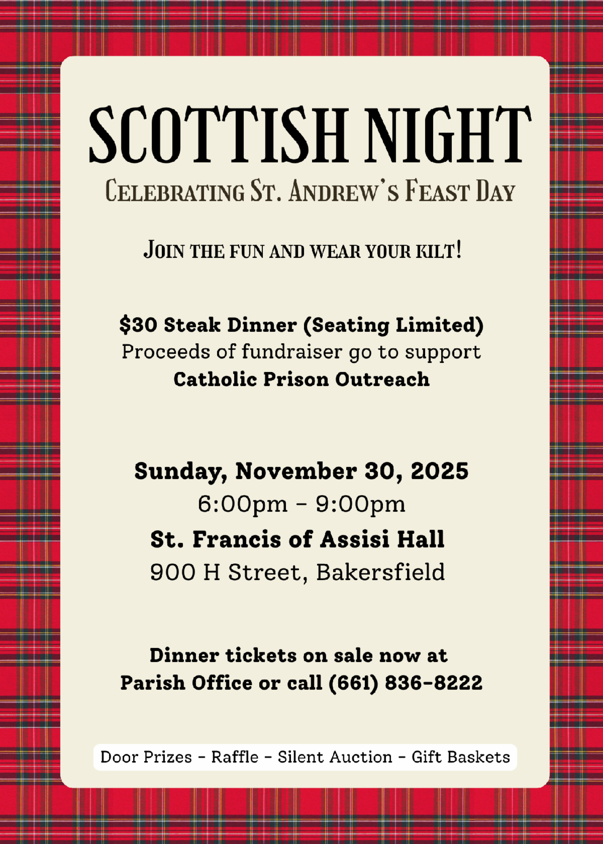 Get your kilt ready and join them on Sunday, November 30th at St. Francis of Assisi Hall in Bakersfield from 6:00pm to 9:00pm.