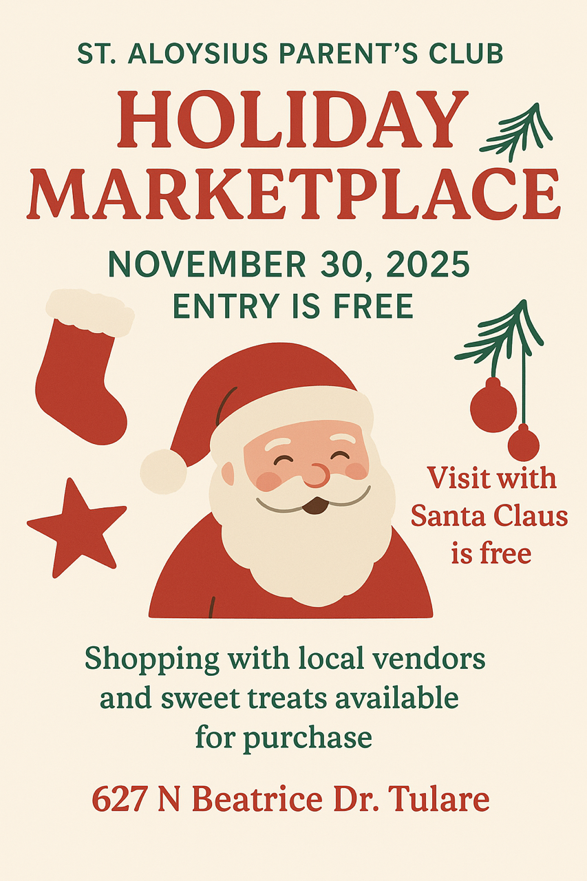 St Aloysius Parent's Club is holding their Holiday Marketplace on Sunday, November 30th!