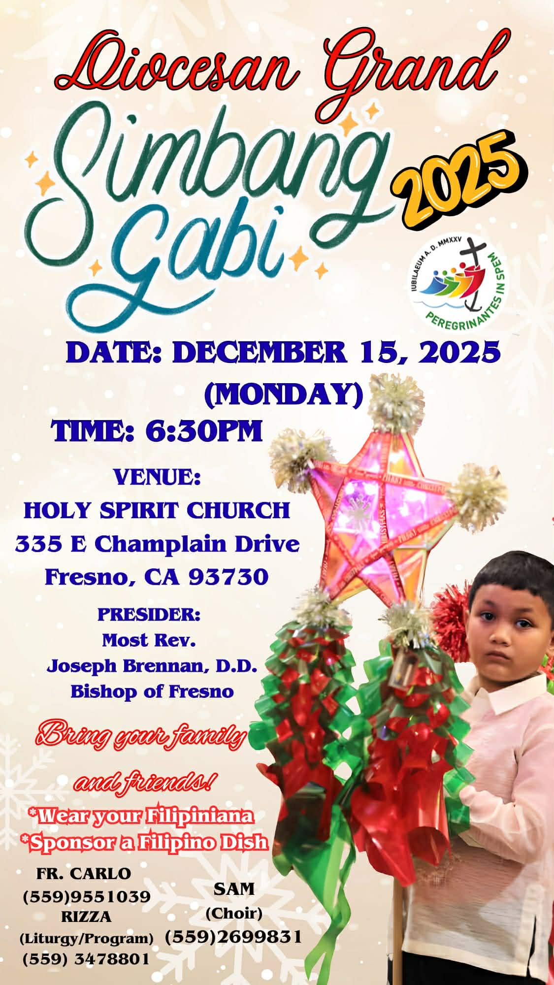Join them for Mass celebrated by Bishop Brennan on Monday, December 15 at Holy Spirit Church in Fresno starting at 6:30pm.