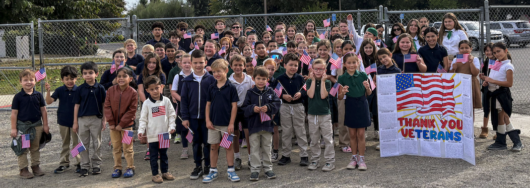 Students at Our Lady of Miracles School in Gustine welcomed local veterans to the campus for a Flag Raising Ceremony, prayer, and gifts of thanks.