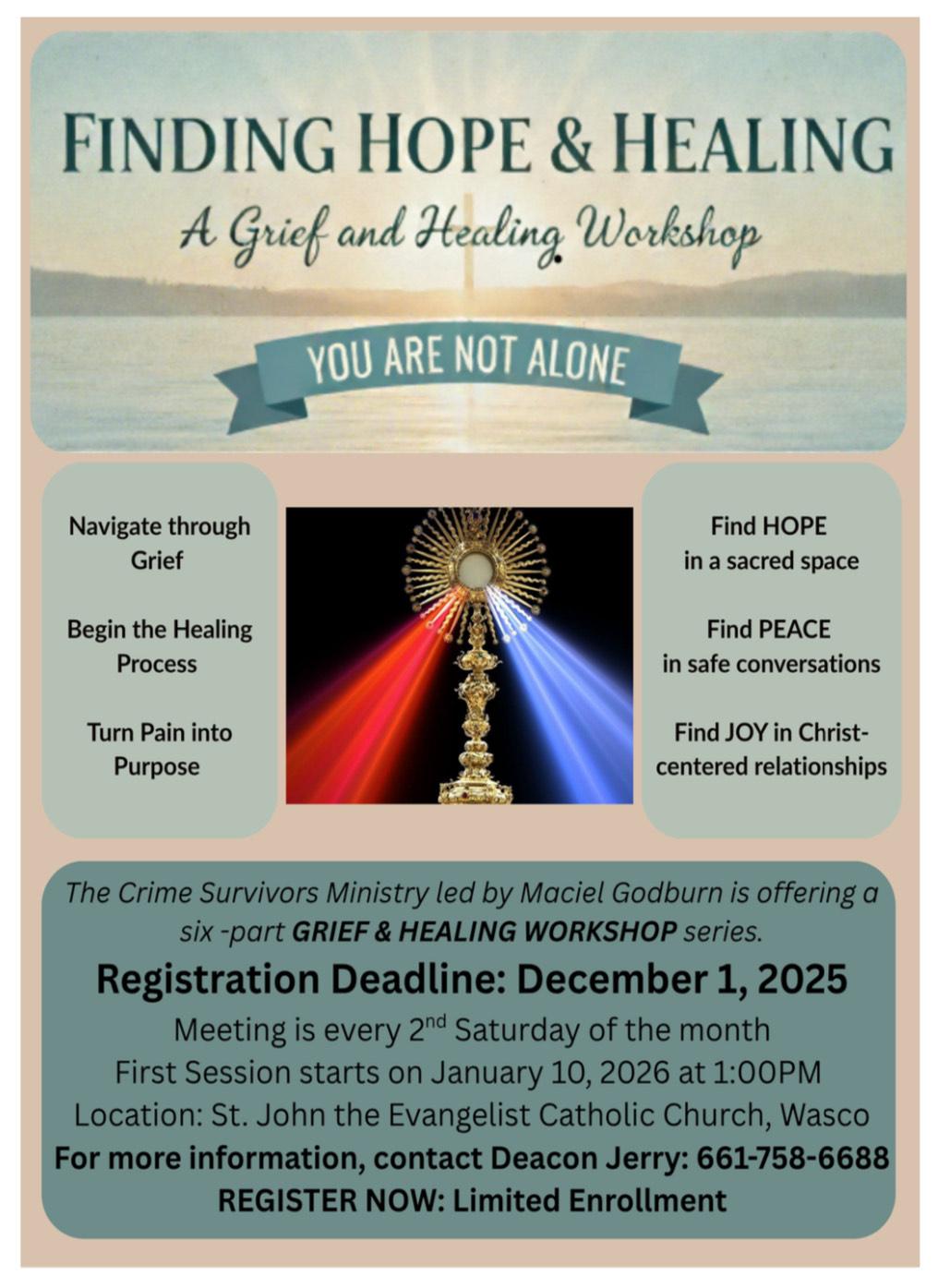The workshop is a six part series and begins on Saturday, January 10th, 2026 at St. John the Evangelist Church in Wasco.