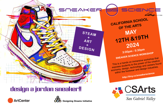 We have the honor to host Roosevelt Brown, an Art Center Professor, from Designing Dreams Initiative with their "Design a Jordan Sneaker" workshop that was recently featured in Pasadena Now. This is a hands on immersive workshop that exposes students to the power of the creative economy, design, technology and careers found within the footwear and design industries. Please fill out this Form to register and hold your spot. There are limited spaces available, and P&D is covering the cost. However, if you sign up and do not attend, there will be a $50 charge to cover the cost of materials. Workshops are on Fridays 5/10 and 5/17 3pm-5pm, and you must attend BOTH.
