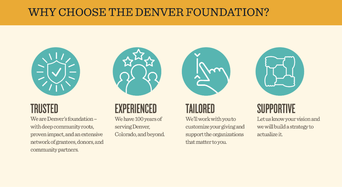As we move into The Denver Foundation’s 100th year, we felt that it was time to examine the Professional Advisor's Council (PAC) direction to ensure we align with the foundation's commitment to improving the community we share. With that goal in mind, we couldn’t ask for a better PAC chair to lead us through this very special year than Miranda Hawkins.