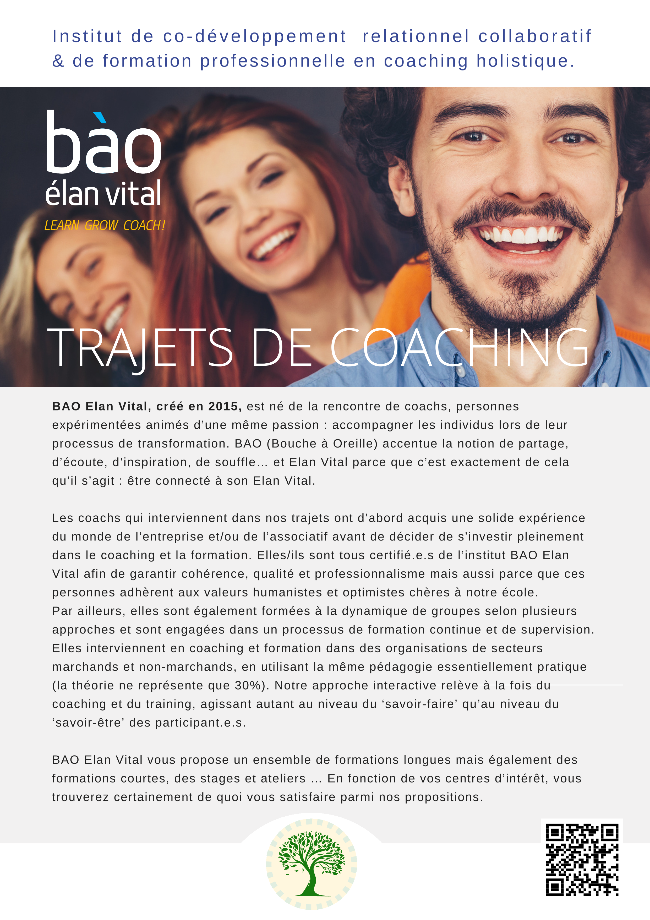 "C’est ce qu’on entend parfois quand on parle de notre trajet Trainer-Coach à l’institut de formation BAO-Elan Vital Training, Coaching, Mentoring, Supervision & Transitions.